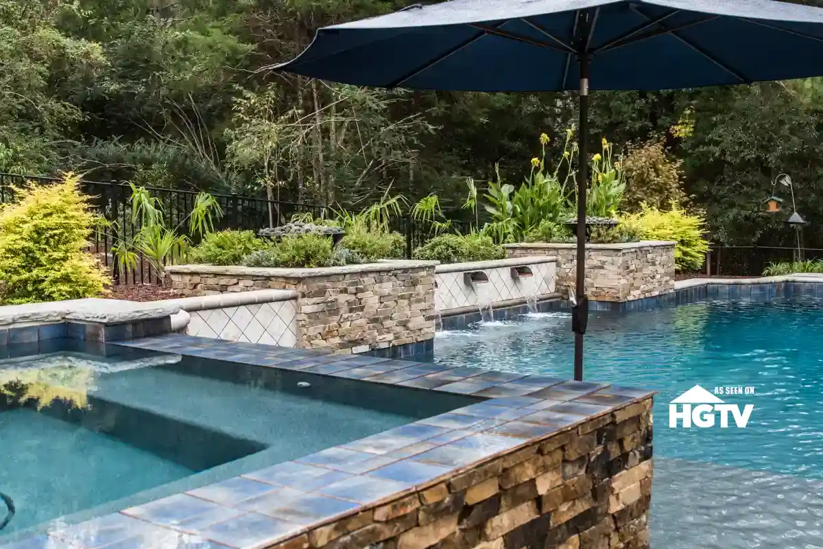 Featured in Season 5 Episode 5 (It’s About Time) of Pool Kings, The Biddle Project involved the construction of a formal pool, spa, & patio space for a family with older children who were expecting grandchildren soon. In order to give them the backyard of their dreams, we designed a lavish outdoor living space that is both beautiful, functional, and is sure to be a source of many happy family memories for years to come.