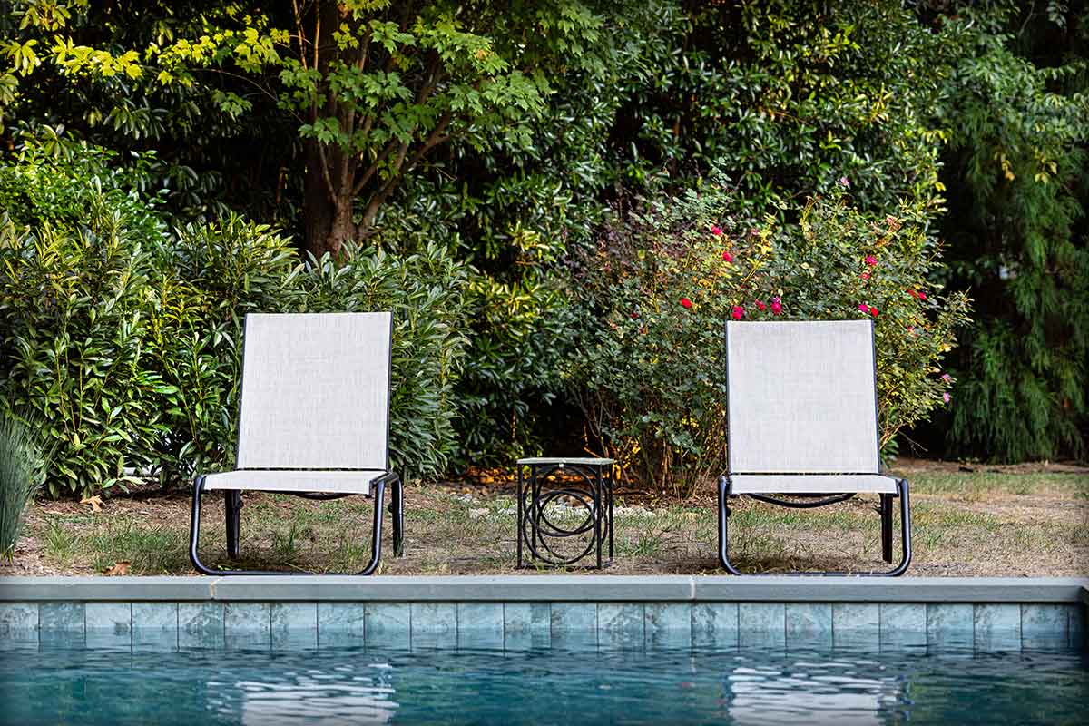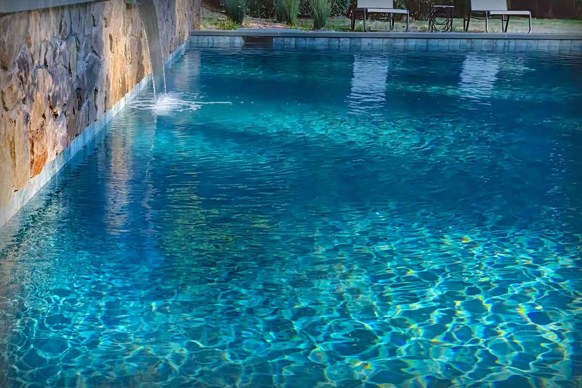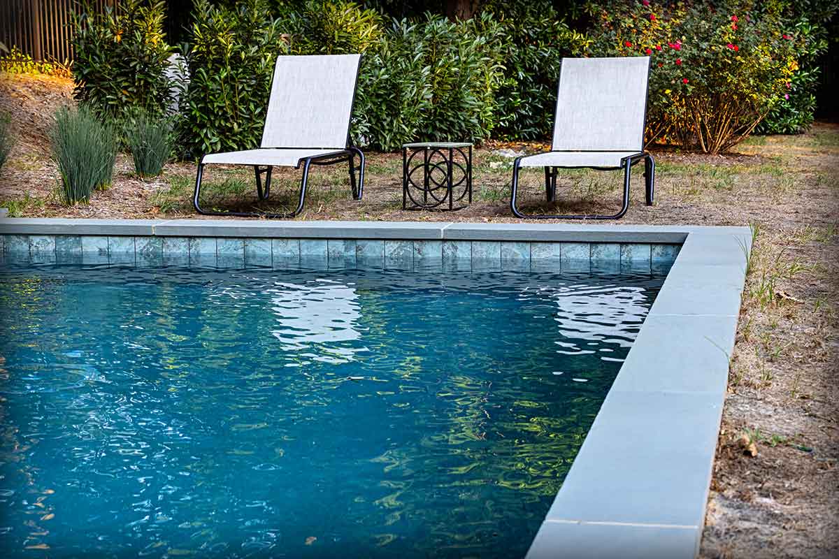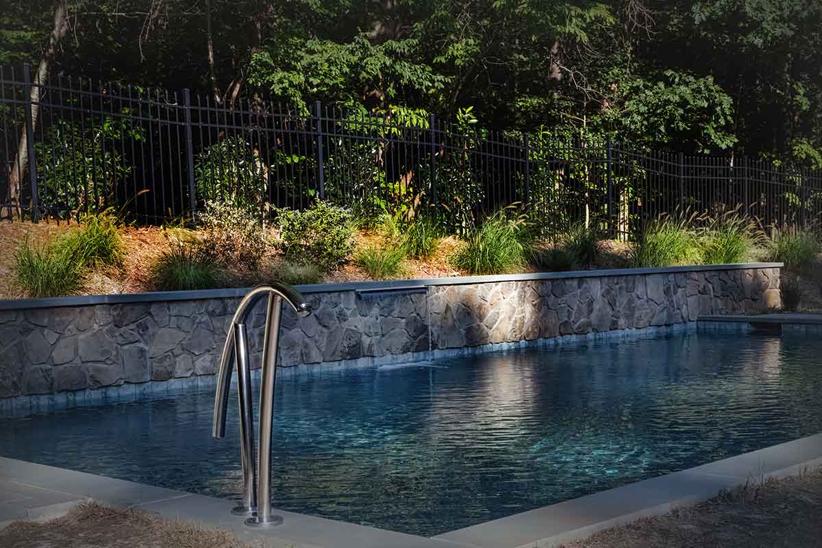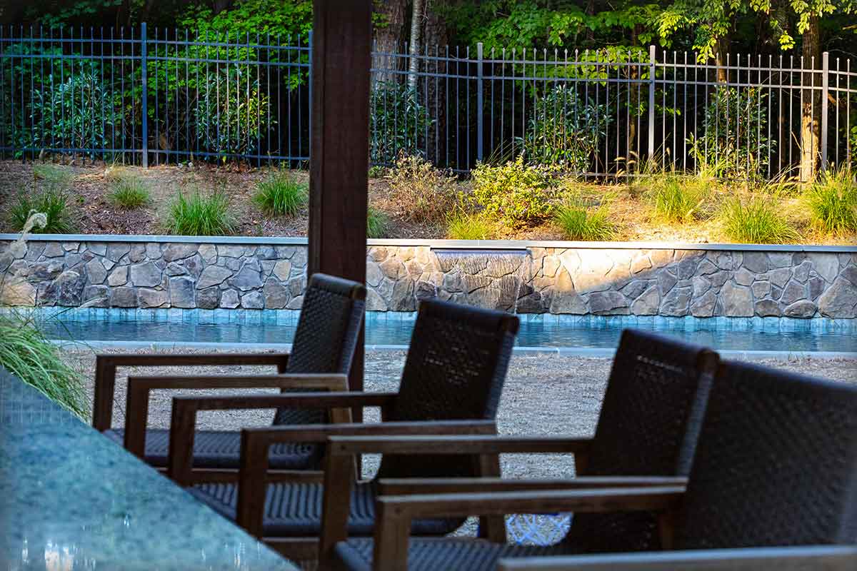 The result is a simple yet beautiful poolscape—purpose-built for wellness, accented with artistic details, and seamlessly integrated into the natural setting.
